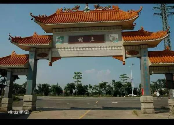位于百安路均安段路边的上村村道的牌坊,牌坊村名题额及对联均是由李文田之孙、现代著名书法家李曲斋所题。