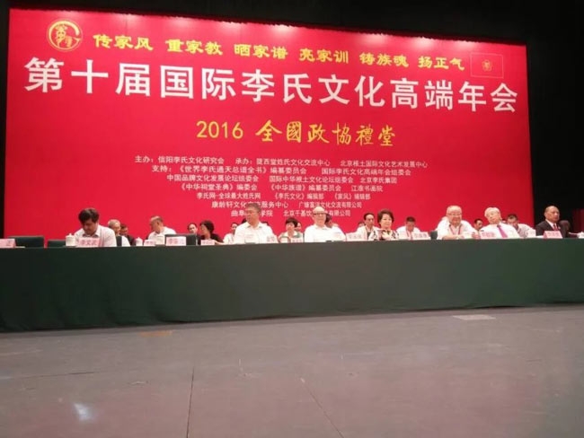 热烈祝贺2016第十届国际李氏文化高端年会在京召开