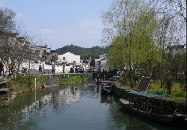 粉墙红衣、小船大树,相映在镜子般的溪水里,说不心醉都难
