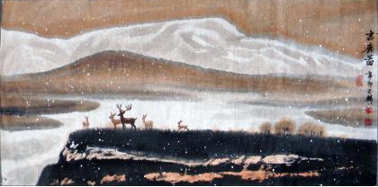 李玉麟大师的国画《吉鹿图》