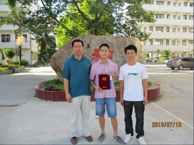 黎洪鑫与校长和班主任合影
