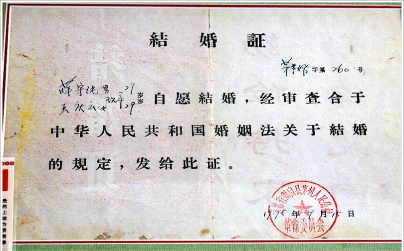1976年时的结婚证