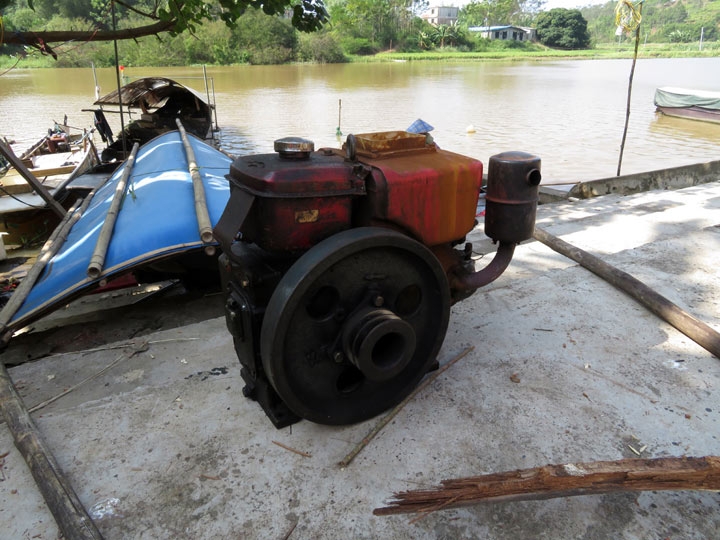 码头边,摆放的柴油机头