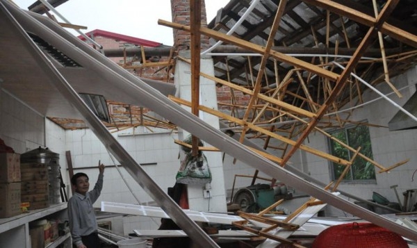 被巨风掀翻的厂房、房屋