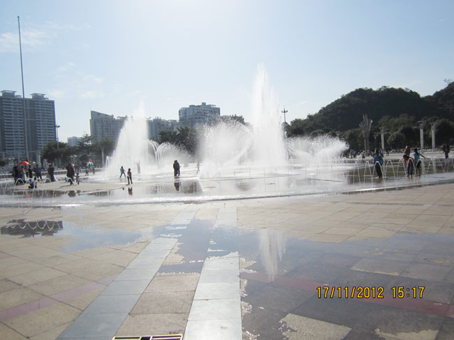 住的地方前面正好是广场,当天嘛,广场在白天里开了喷泉