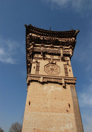 乔寺碑楼,建于清道光十七年(1873年),为功德碑楼,单体建筑,平面长方形,碑楼石砌台基长17米,宽2.60米,高1.50米,楼身约高15米。楼身六间,单檐歇山顶。正面五碑室七通碑,序由乙未科探花乔晋芳撰,每室之间有通柱石雕对联,上嵌石匾额,楼体上部四面均为仿木斗栱砖雕,三踩单翘,龙形耍头,有椽飞,并雕有人物、花卉。