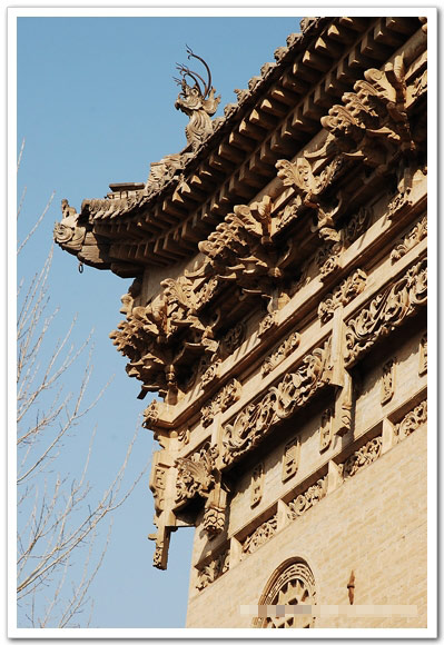 这是碑楼的背面,上面石雕、砖雕、不知道有没有木雕,实在是繁杂精美,让人惊叹。