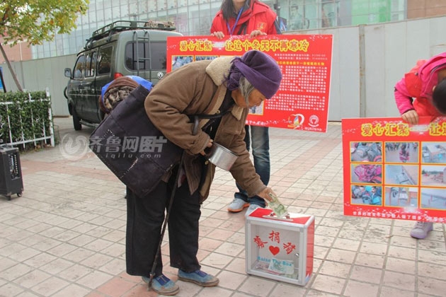 乞讨大妈为山区捐款