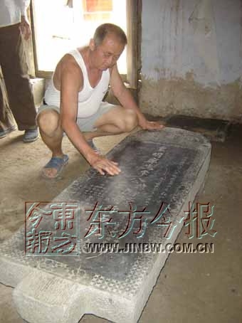 昨天,记者在唐村见到了李自奇的墓碑。唐村66岁老人李立伟介绍,今年5月底,村民李振田在村北头浇地时发现了该墓碑,墓碑宽0.5米,长1.52米,厚0.12米,青石制作。得知此事后,李立伟觉得该碑文非常重要,他组织村民将墓碑运回村中。
