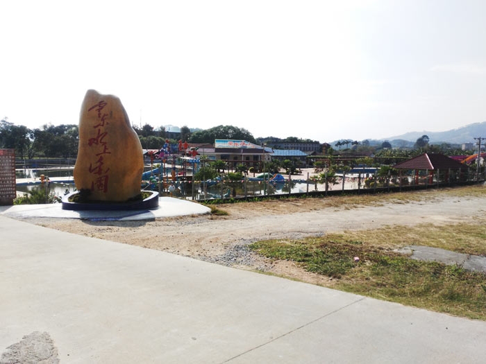 远看灵东游乐场的石标