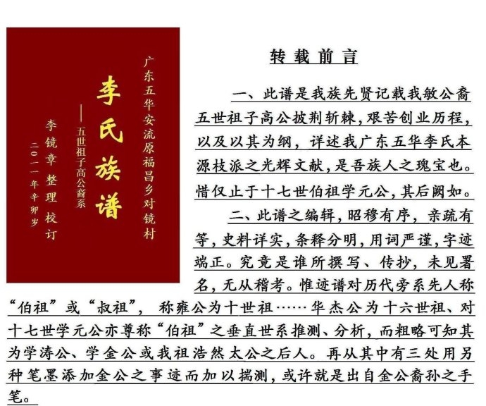 广东五华安流原福昌乡对镜村李氏族谱