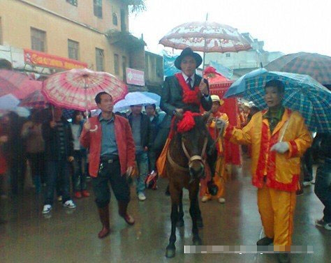 新郎官骑马撑伞