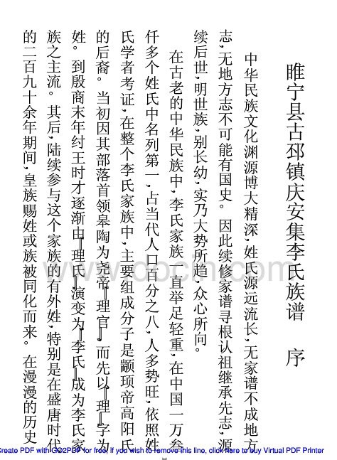 睢宁县古邳镇庆安集李氏族谱(2010年版本)