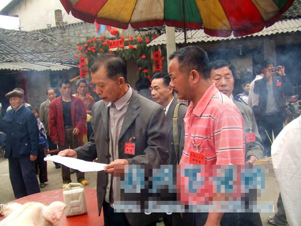 罗城县李氏宗亲会负责人和李氏宗祠负责人在宣读祭祖活动安排