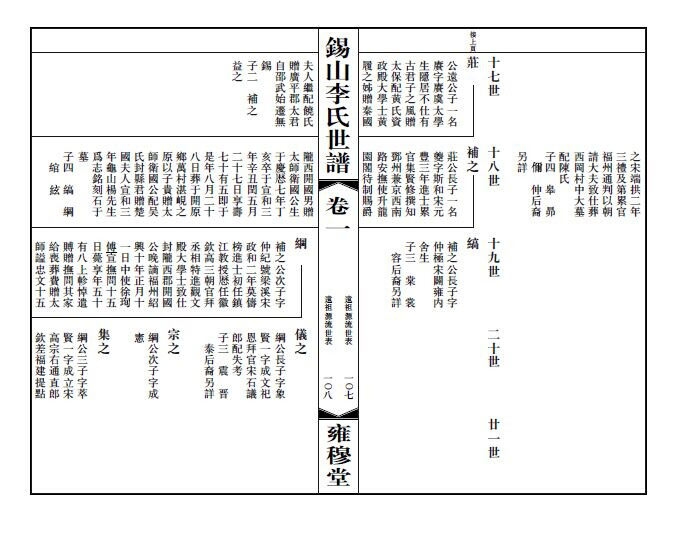 锡山李氏世谱图
