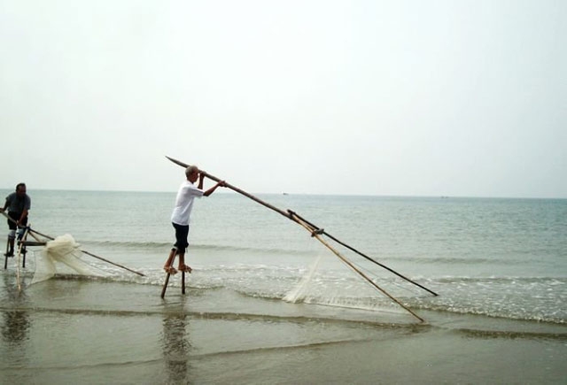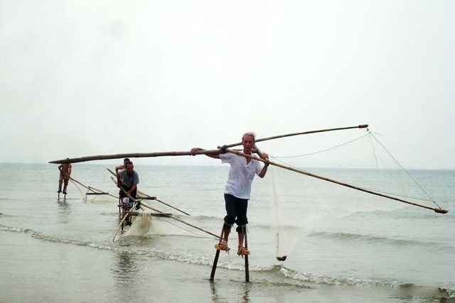 ‘踩高跷’捕鱼的金滩老人5