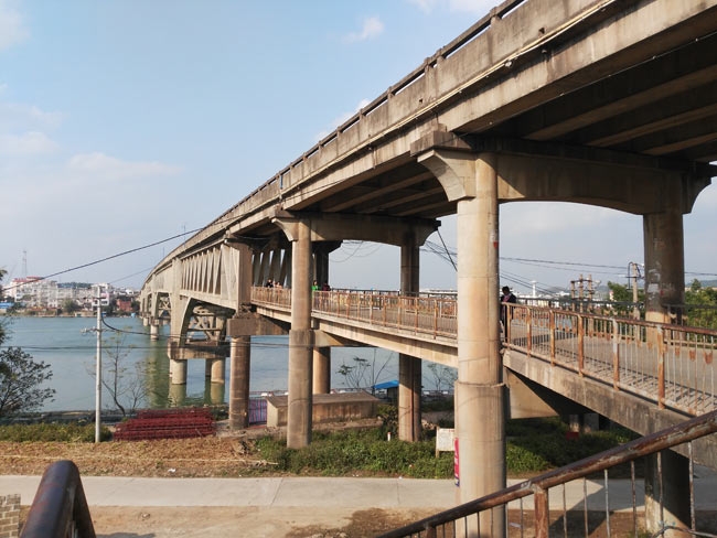 桥分两层,上面通汽车,桥中层为人行和摩托行走