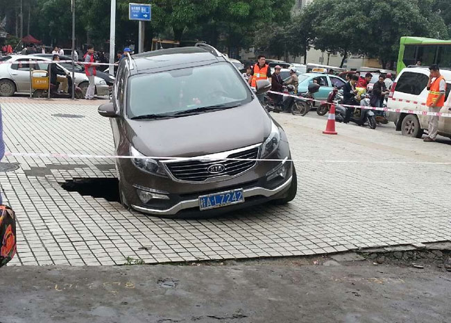 车子掉进塌陷的大坑1