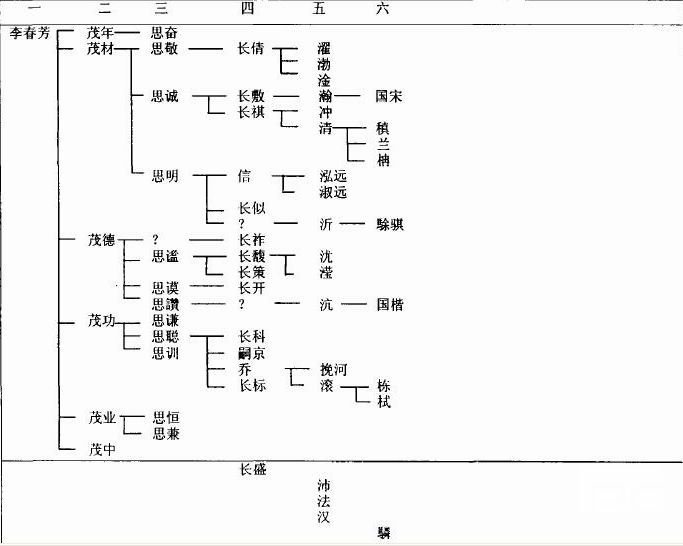至是李春芳孙辈。下录曾孙“长”字辈数人。