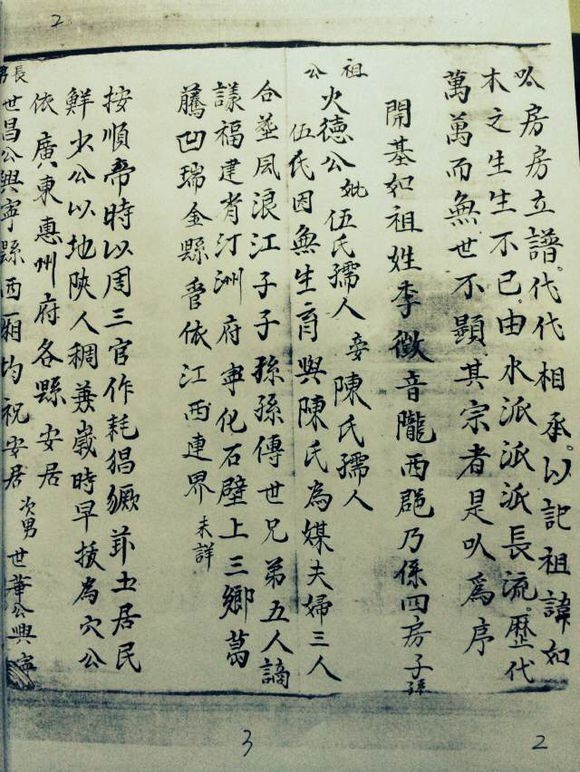 几页惠州李氏古族谱资料