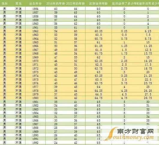 男性延迟退休时间表