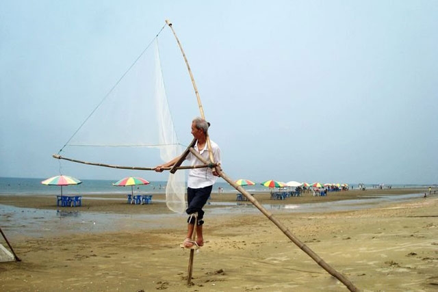 ‘踩高跷’捕鱼的金滩老人5