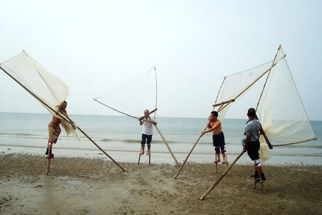 ‘踩高跷’捕鱼的金滩老人4