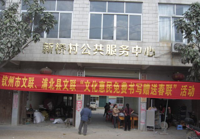 新桥村委前挂上了横额