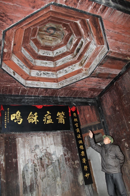 戏台天花板“藻井”呈“阴阳八卦太极图”之式