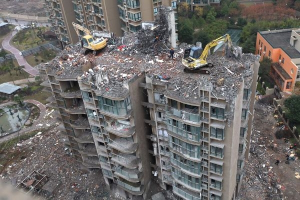 挖机正在拆除一幢18层高的居民楼2