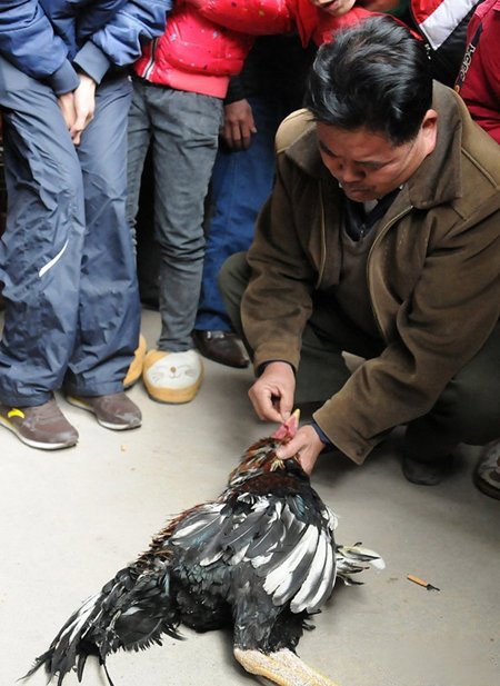 主人为斗鸡做人工呼吸