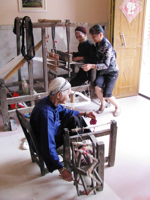 长寿之乡巴马巴盘屯百岁老人在纺织
