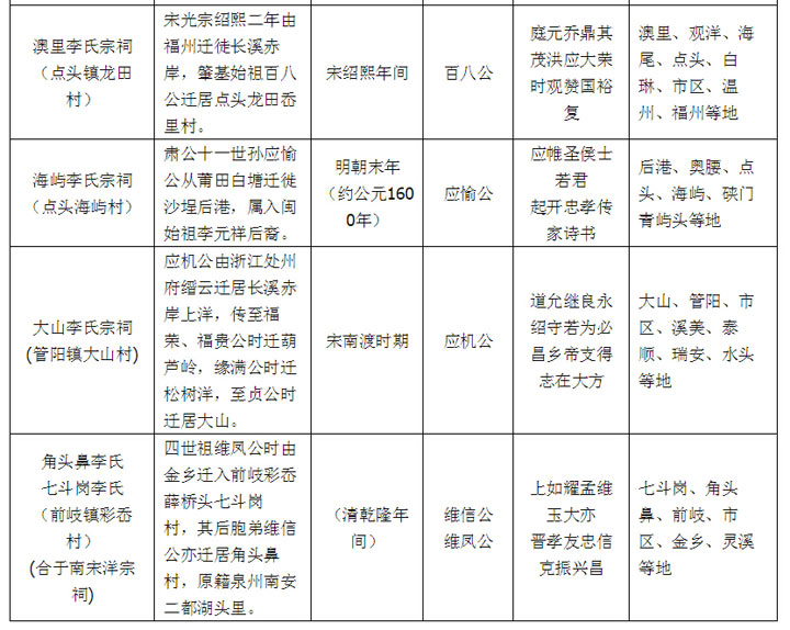 福鼎李氏各支系资料明细表2
